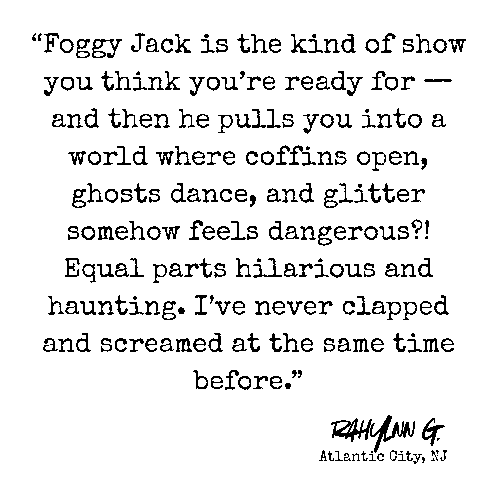 Foggy Jack is a paranormal mentalist and master storyteller who fuses illusion, psychology, and dark humor into one electrifying experience. His shows are part séance, part social experiment—using the art of mystery to reveal insights about belief, communication, and influence.
